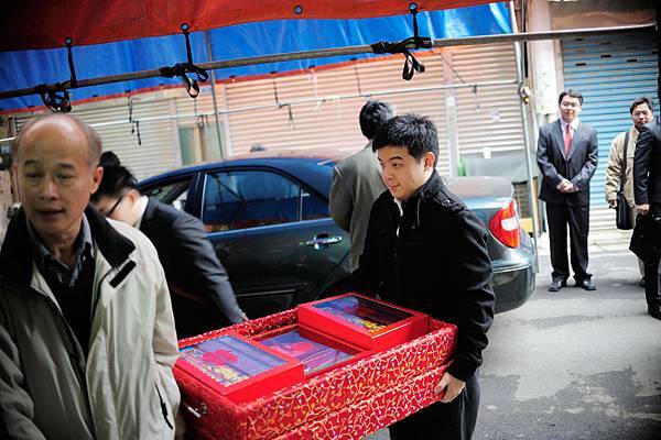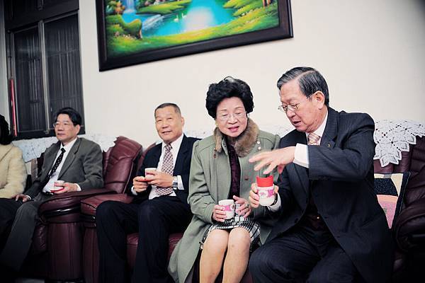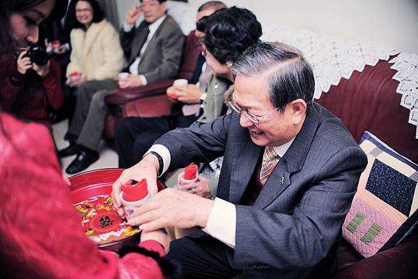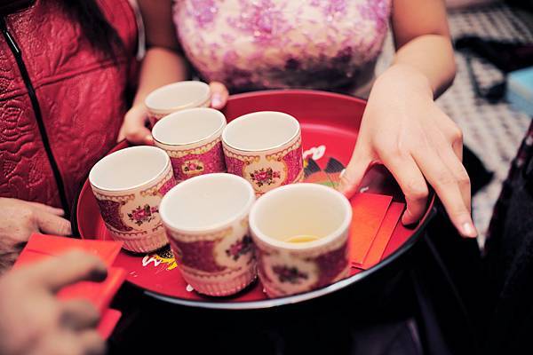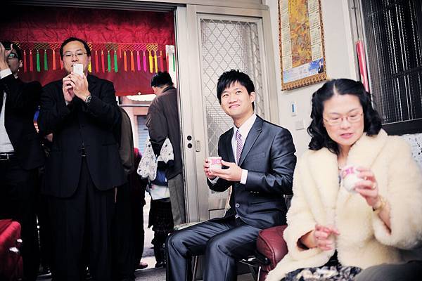 男方坐定後 先由準新娘的姊妹端茶給男方(不是吃茶唷~ 只是請他們喝杯茶 休息一下)