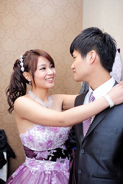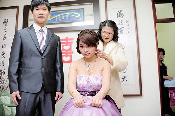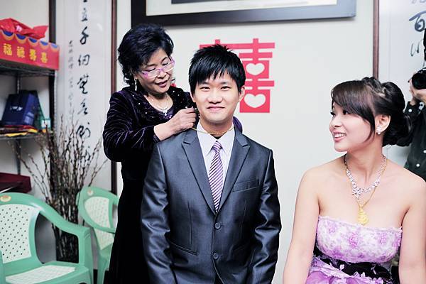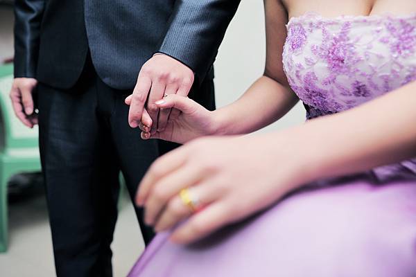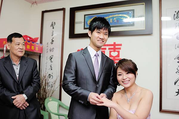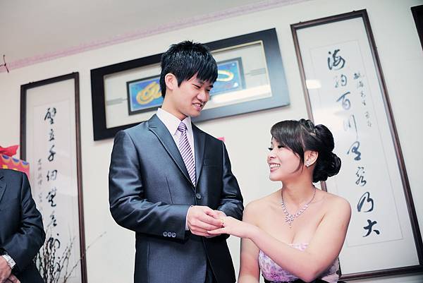 ↓ 準新郎給準新娘戴戒指 (我給他戴到底唷~雖然中間好命婆很緊張 但跟她說明我也會把他套到底 就OK啦~)