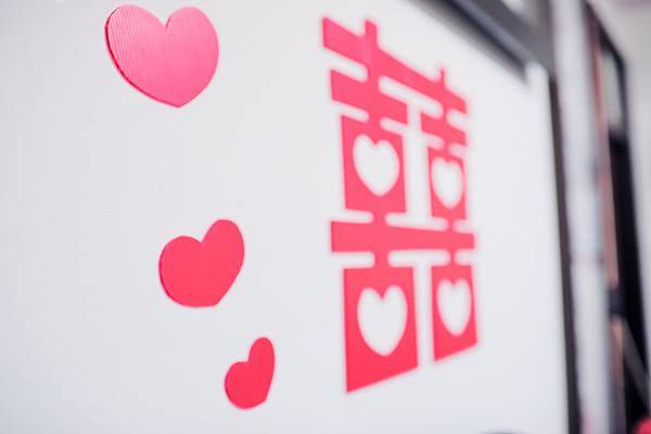 ↓ 牆上的囍字是我為了拍婚紗自己做的道具唷~ 拿來貼在牆上是不是很環保...XD