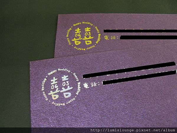 ↓ 當初燙金和燙銀讓我苦惱了好久,索性兩種都用,長輩帖用燙金的,平輩帖用燙銀的