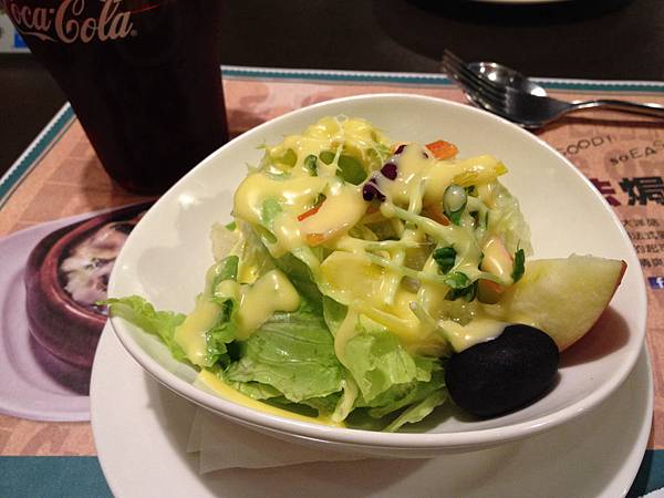 搭配沙拉的醬是水果優格醬 表現得中規中矩
