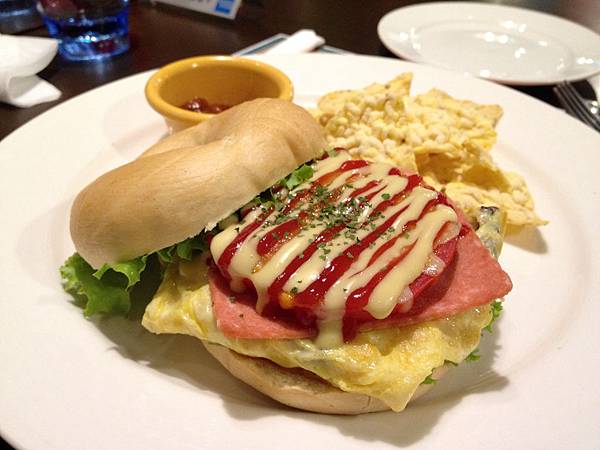貝果整個很紮實 豐富的蕈菇都包在蛋裡面