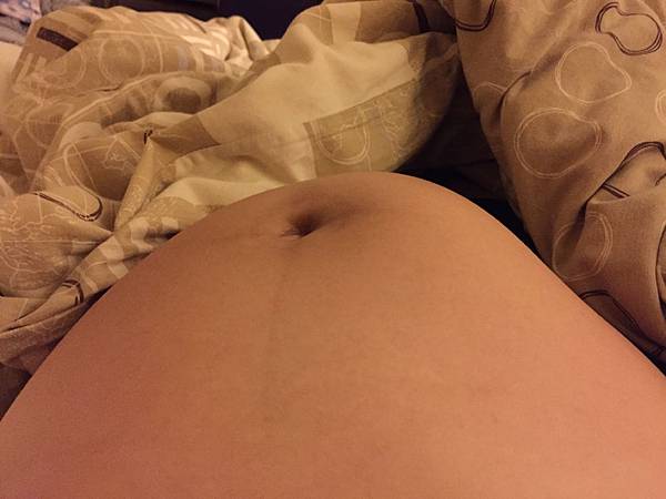 因為要左側睡嘛 所以我都習慣用右手摸右邊的肚子 然後摸一摸沒多久就凸起來了
