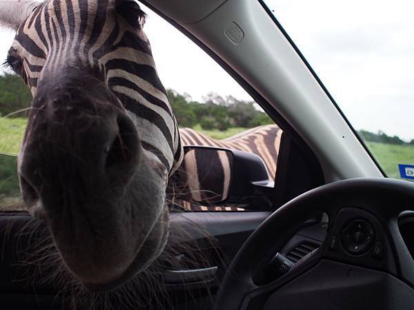 果不其然 斑馬大辣辣地把頭伸進車裡討吃的