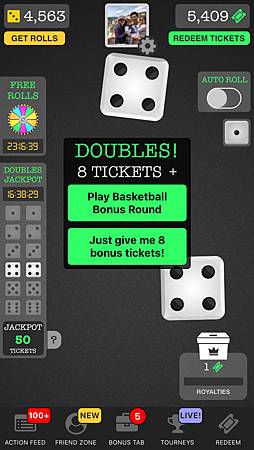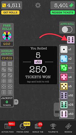這意思是說 當你擲骰子到兩個一樣的點數 就有double tickets 如果集滿1~6的double 就有額外的jacketpot tickets