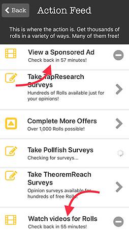 3.看廣告 目前每個小時Action feed裡有五個廣告可以看(分兩個地方看) 就得到5 rolls 千萬別小看這些rolls 一天累積下來也可以到30幾個rolls