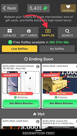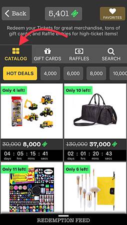 可以看到有hot deals, 4000, 6000, 8000tickets...等等的兌換商品