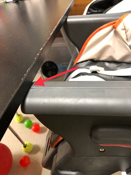 如果座椅的高度調整到跟桌面太接近 就容易夾到寶寶的手 Phoenix不知道被夾到幾次了...QQ